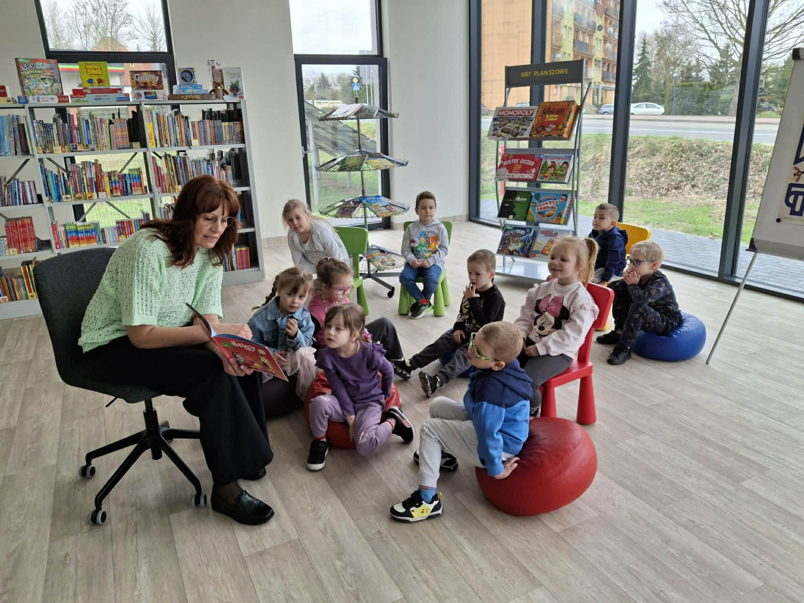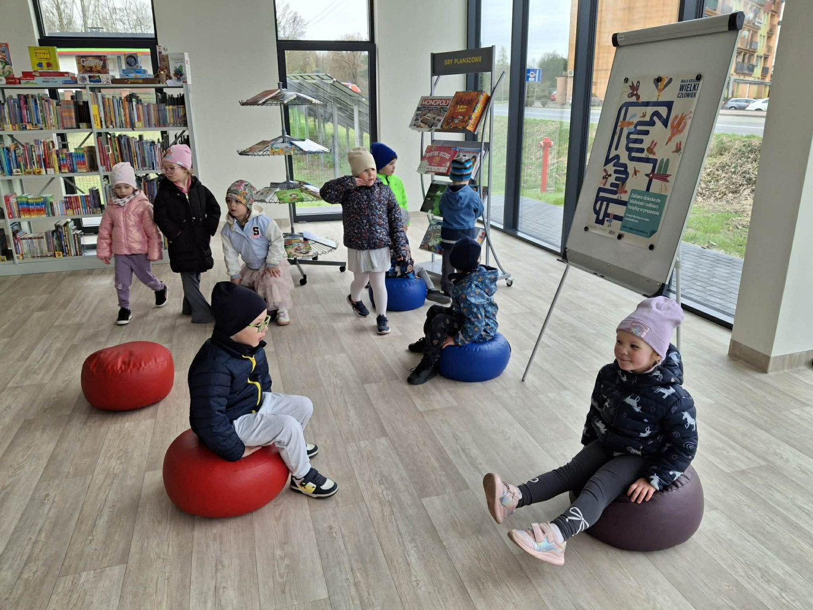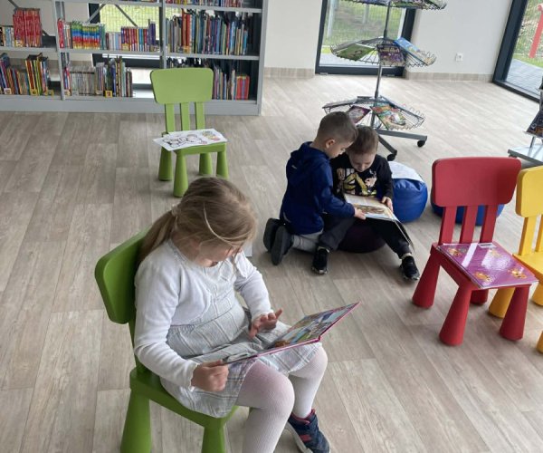 Dzieci z ogromnym zainteresowaniem wysłuchały bajki o przygodach Bluey, przenosząc się w świat wyobraźni, a potem ruszyły na odkrywanie naszej biblioteki - miejsca, które nie tylko wypożycza książki, ale także jest przestrzenią spotkań, kultury oraz wspólnego rozwijania pasji.