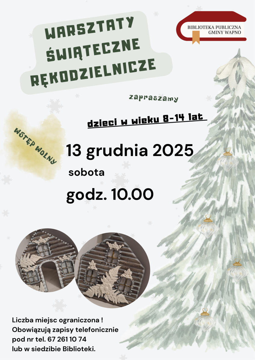 Zapraszamy dzieci w wieku 8-14 lat na świąteczne warsztaty rękodzielnicze do naszej Biblioteki !